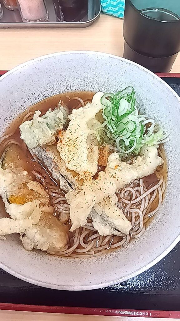 野菜かき揚げそば490円玉ねぎ・人参・さつまいも中心の軽やか天ぷら
