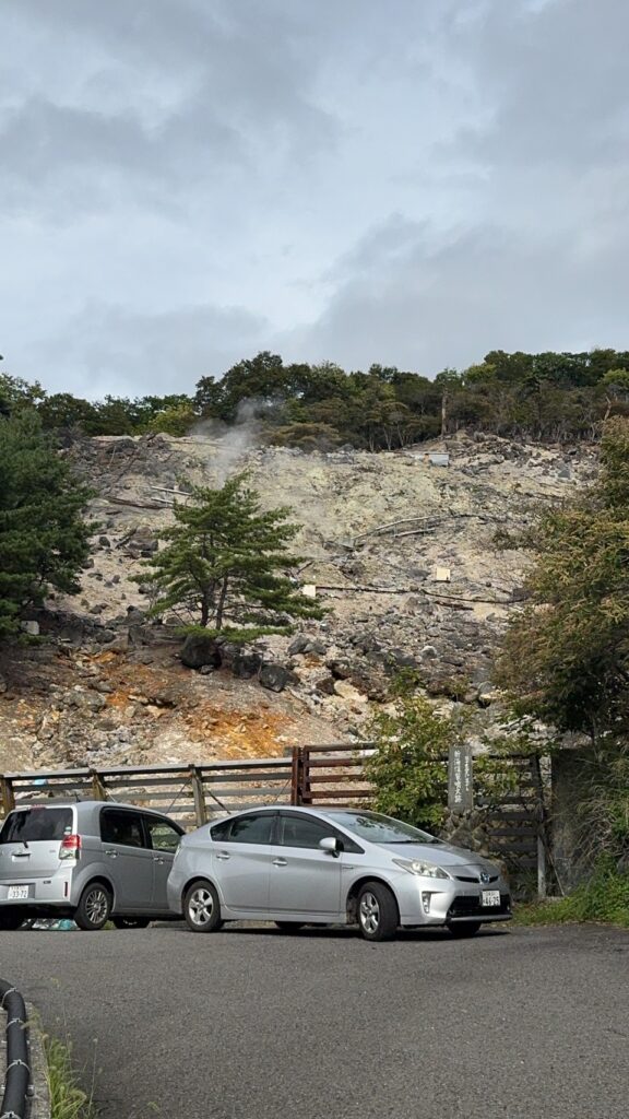 また、中の湯の裏手には噴気孔が並び、地面から熱気が立ち上っています。浴場の外に出ても、火山の息吹を肌で感じられるのはここならではの魅力です。